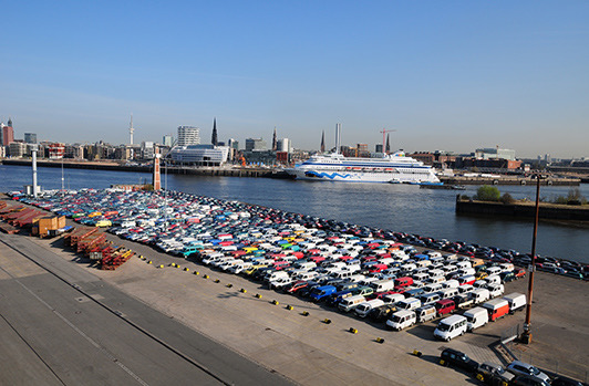 Am O’Swaldkai arbeitet die größte auf rollende Verladungen spezialisierte Hafenanlage im Hamburger Hafen.