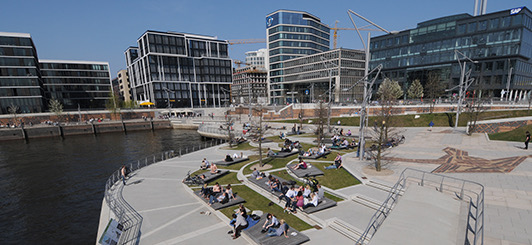 Die Marco-Polo-Terrassen liegen am Grasbrookhafen, auf den sie einen schönen Ausblick bieten.