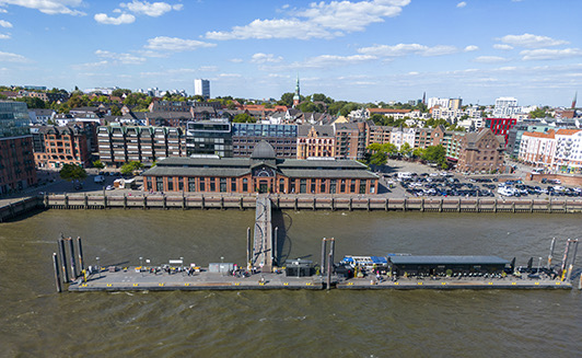 Der Fähranleger Fischmarkt befindet sich in der Nähe der Altonaer Fischauktionshalle in Hamburg und wird von der HADAG-Linie 62 bedient.