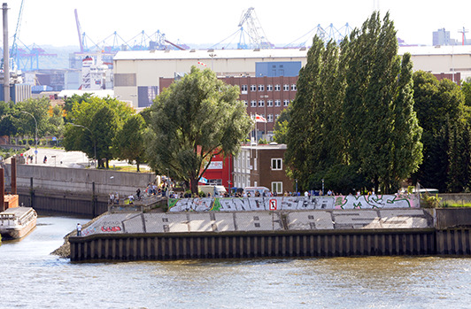 Auf der Steinwerder-Seite des alte Elbtunnels befindet sich ein kleiner Platz, der zu später Stunde nicht so überlaufen ist, wie die andere Seite des Flusses. Hier trifft Street Art in Form von Graffiti auf Elb-Idylle. Schnappt euch entweder ein Bier vom kleinen Verkaufswagen, der hier ab und an aufkreuzt oder bringt euch ein paar kühle Getränke mit. Wer Glück hat, kann hier auch bei entsprechendem Wetter die Sterne sehen.