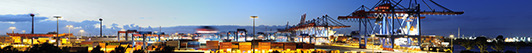 Auf dem Containerterminal herrscht nach der Abenddämmerung weiter Betrieb. Höchste Konzentration ist entscheidend.