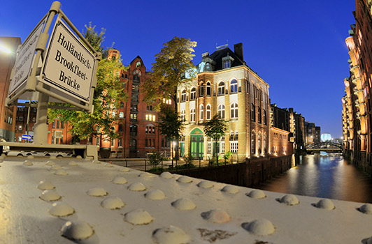 Wo einst Berge von Kaffee, Kakao oder Tee lagerten, finden sich heute Ateliers, Büros und Museen im historischen Gemäuer – besonders schön zu erkunden ist die Speicherstadt bei einem Spaziergang zur blauen Stunde. „Die magische Zeit zwischen Tag und Nacht.“
