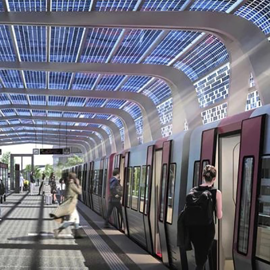 Diese Visualisierung zeigt, wie die Haltestelle Moldauhafen der Hamburger U-Bahn-Linie U4 auf dem Grasbrook aussehen soll. Der Name der Station steht nun fest.Neben dem neu entstehenden Stadtteil Grasbrook profitieren auch die nahe gelegenen Stadtteile HafenCity, Veddel und Rothenburgsort von der neuen Haltestelle.“ (© moka-studio GbR | Hamburger Hochbahn AG)