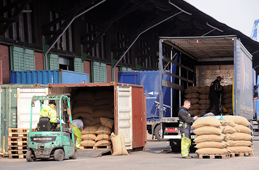 Logistik, Schuppen 52, hier wird Pfeffer aus Vietnam verladen.