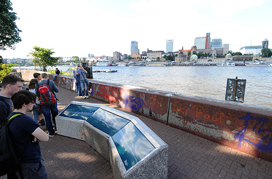 • Treffpunkt: Der Platz ist ein beliebter, etwas ruhigerer Ort für eine Pause nach dem Spaziergang durch den Alten Elbtunnel.
